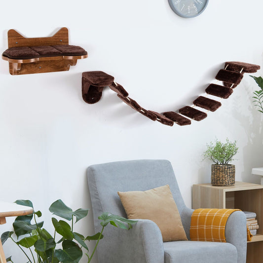 Scaletta per Gatti Montata Al Muro Con Letto Di Legno per Gatti, Centro Attività Da Interno per Gatti Marrone